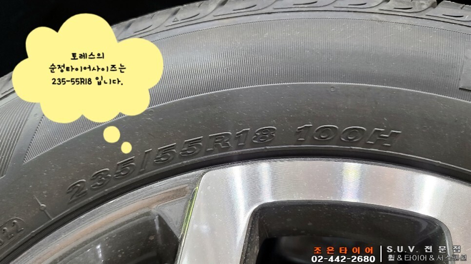 토레스 18인치의 순정 타이어 사이즈는 235-55-18이죠.