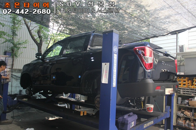 강성의 스테빌라이저 장착을 위해 입고된 렉스턴스포츠입니다.