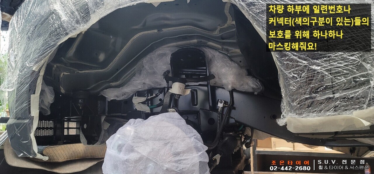 차량하부의 일련번호나 커넥터(색의 구분이 되어있는)의 보호를 위해