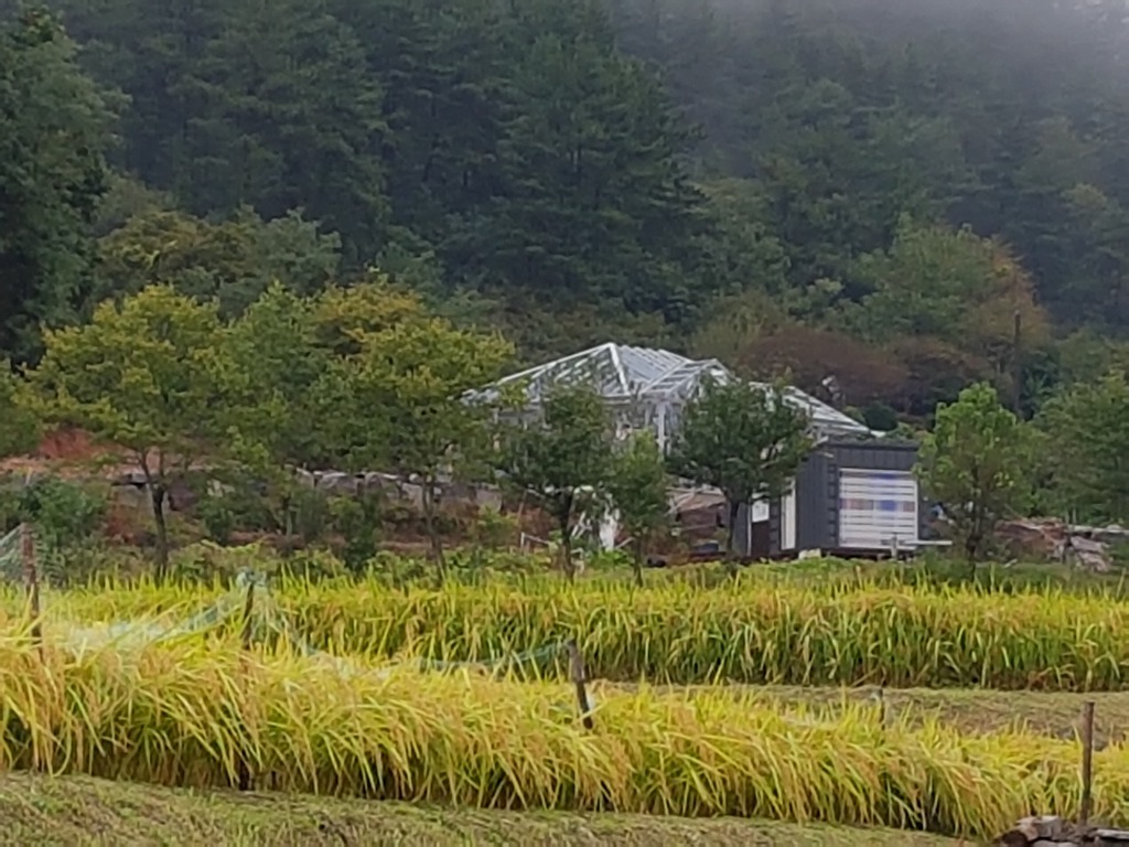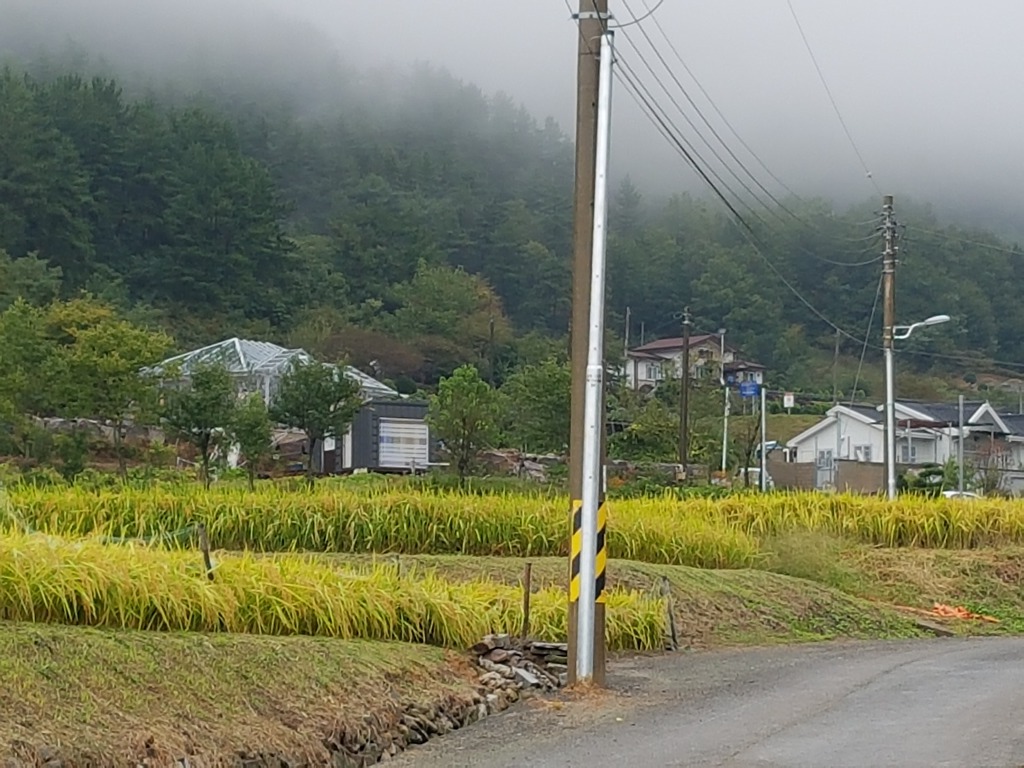 웅장하게 올라가는  황금빛 가을 논에 유난스럽게 반짝거리며 남의 시선을 강탈하는 듯 합니다