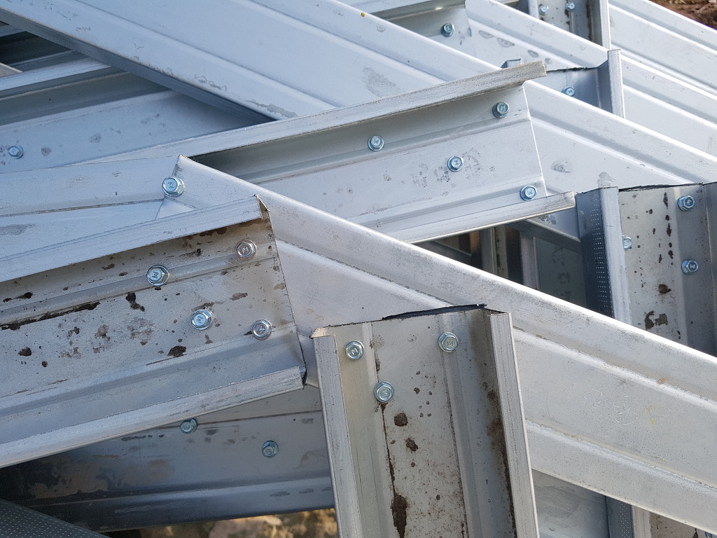 트러스에 접합한 육각스크류볼트로 접합된 트러스들입니다