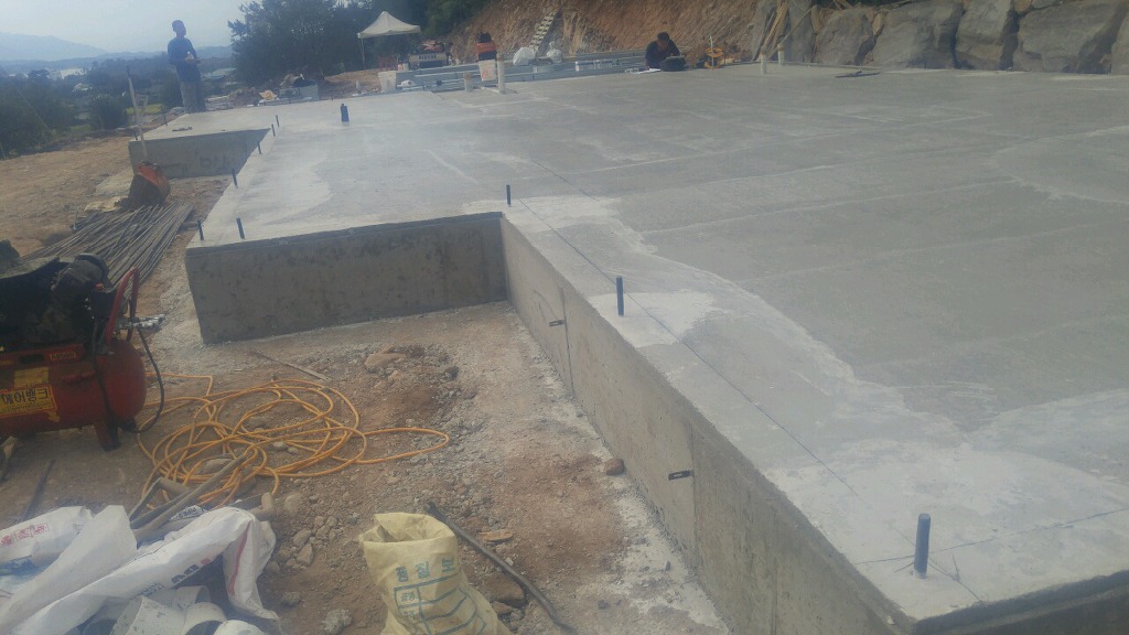정화조 상부측 뚜겅부위에도 콘크리트 타설작업을 하였습니다