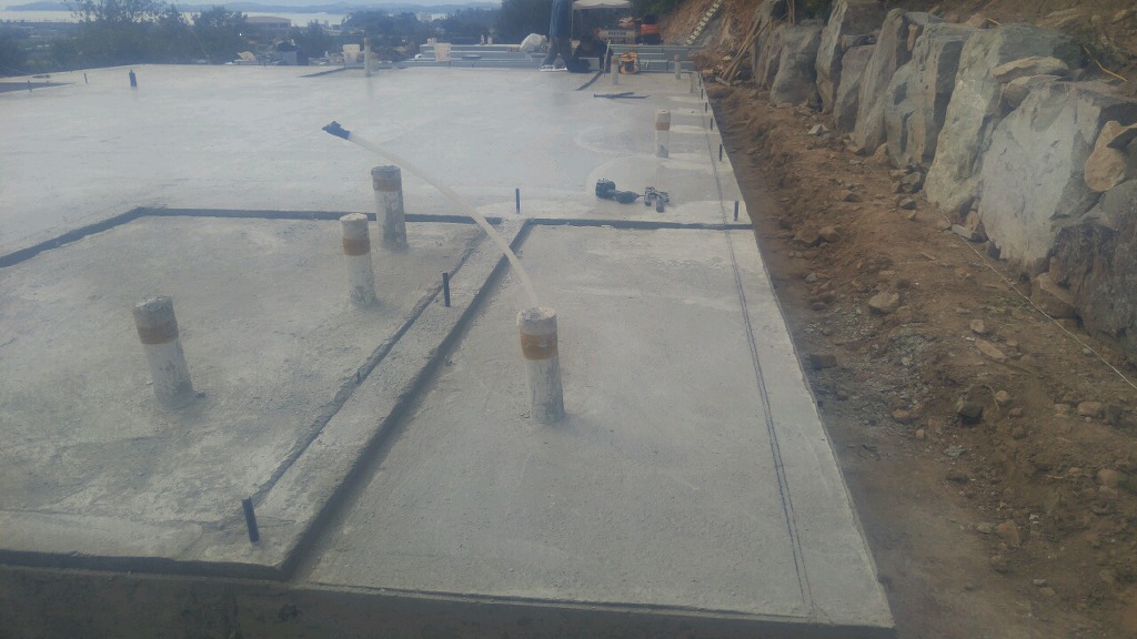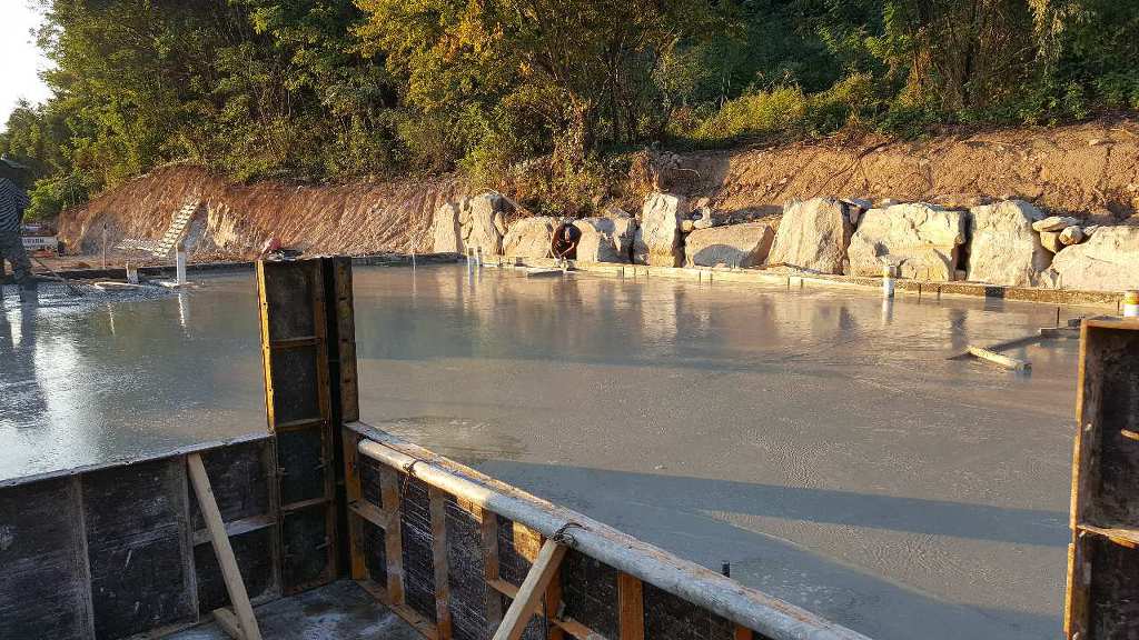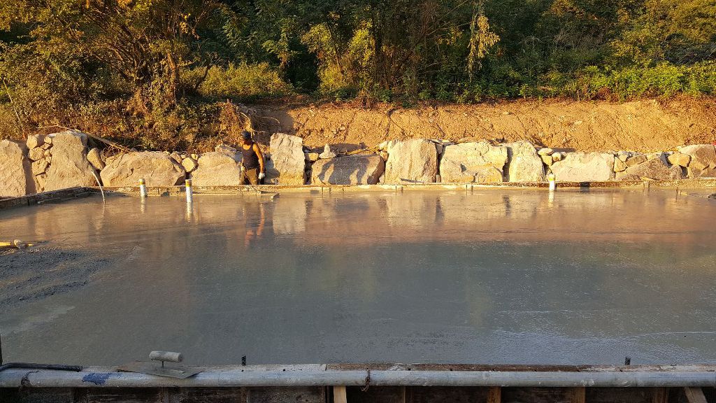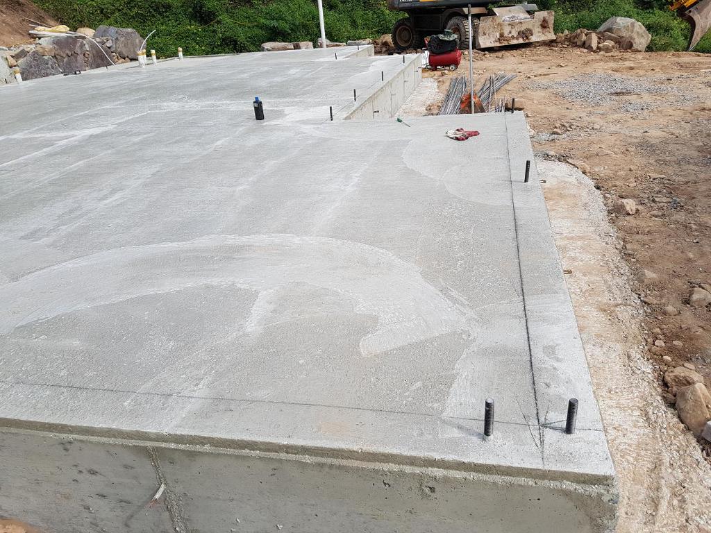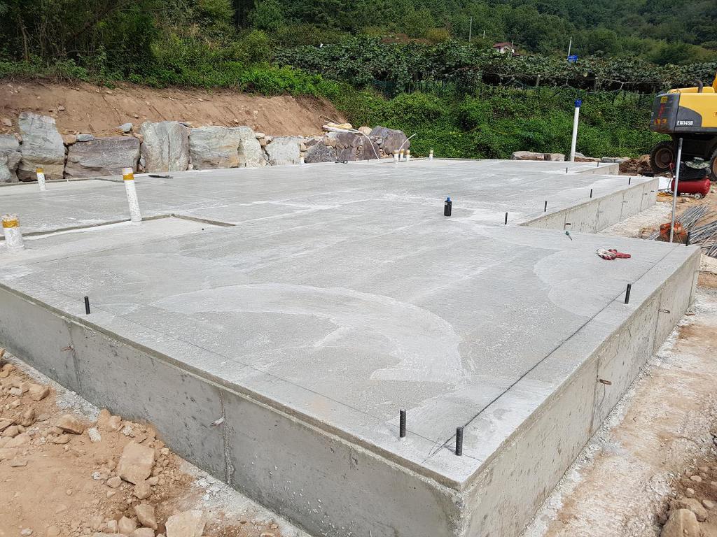 기초 레미콘타설 작업을 하고 바닥면 고르기  작업입니다