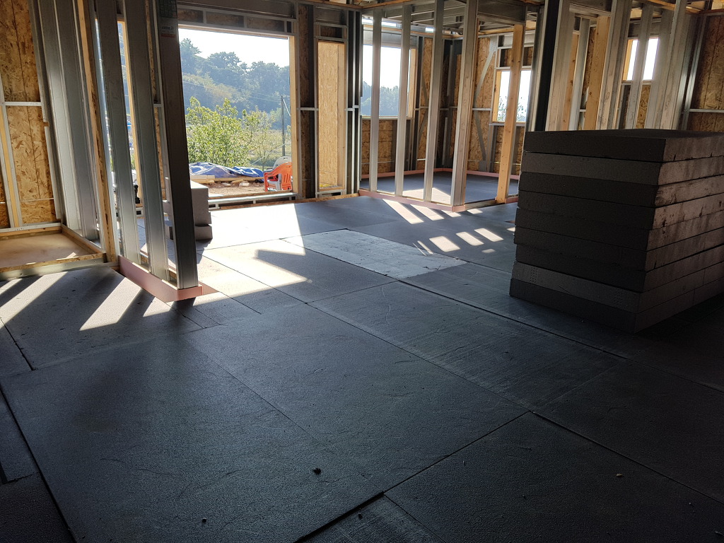 골조구성을 완성하여 바닥에 130mm의 스치로폼을 깔고 난방용 액셀작업을 마친다음
