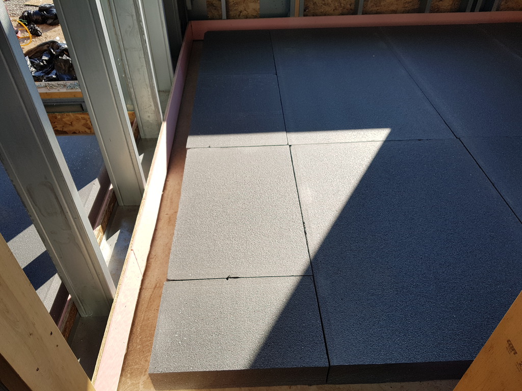 방통작업으로 마감을 하게 되는데 콘크리트로 냉기가 전도되어 열 바닥에 열손실을 방지 하기 위한 작업입니다
