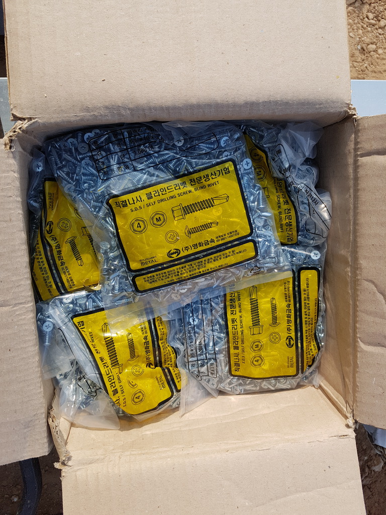 연결철골 연결부위마다 피스결속을 하여 강도를 높여주는 부자재입니다