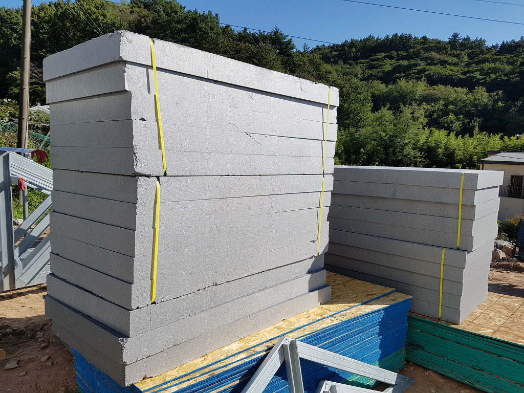 스틸하우스의 기초는 전자레벨로 맞추어 위에서 요구하는 정밀성에 합당해야 하는이유이기도 합니다