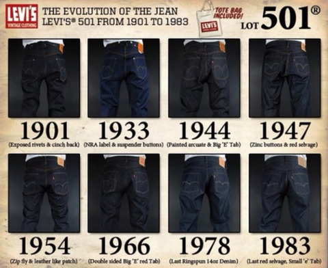 밑에 사진을 보시면 연도별 501 모델이 잘 소개되어 있습니다.
