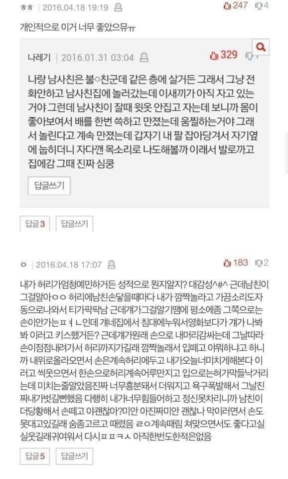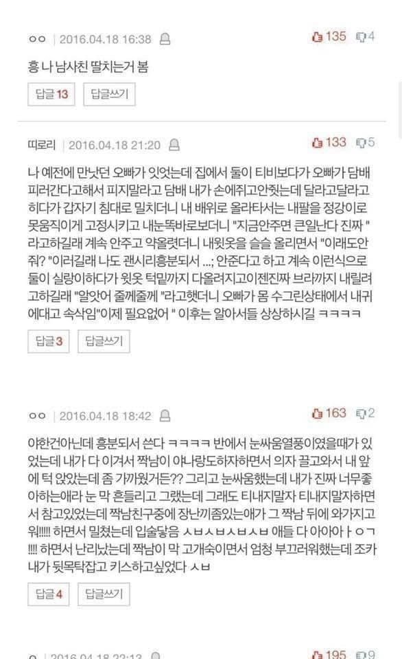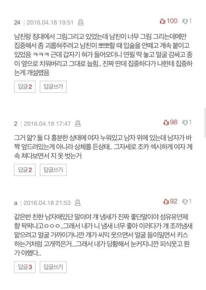 [스크랩] 여자들이 말하는 야한상황 경험담..jpg 작성자불사11|작성시간20.10.22|조회수6,071 목록 댓글 1 글자크기 작게가 글자크기 크게가 다음검색 스크랩 원문 : 이종격투기 현재 게시글 추가 기능 열기 북마크 공유하기 신고 센터로 신고 댓글 댓글 1 댓글쓰기 답글쓰기 댓글 리스트 작성자등두꺼비 | 작성시간 20.10.22 다 했으면서 안했데 ㅋ 댓글 전체보기