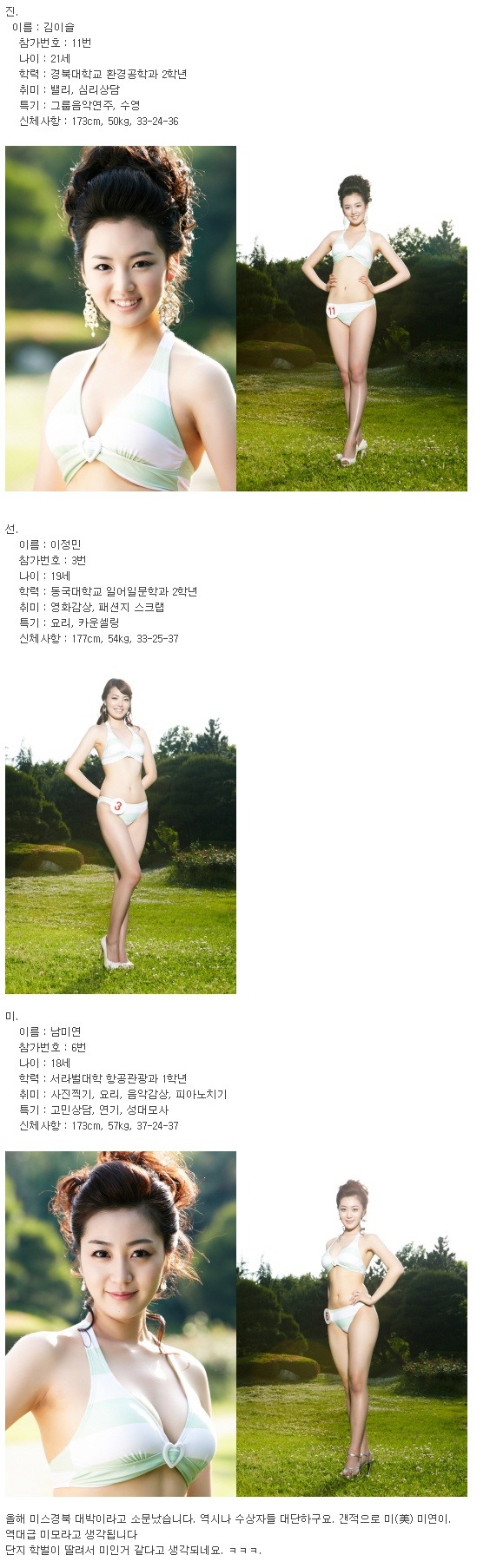 미인대회에서의 입상기준은 결코 남성들의 므흣함을 채워주는 그런 기준이 아니예요 ㅎㅎㅎ -