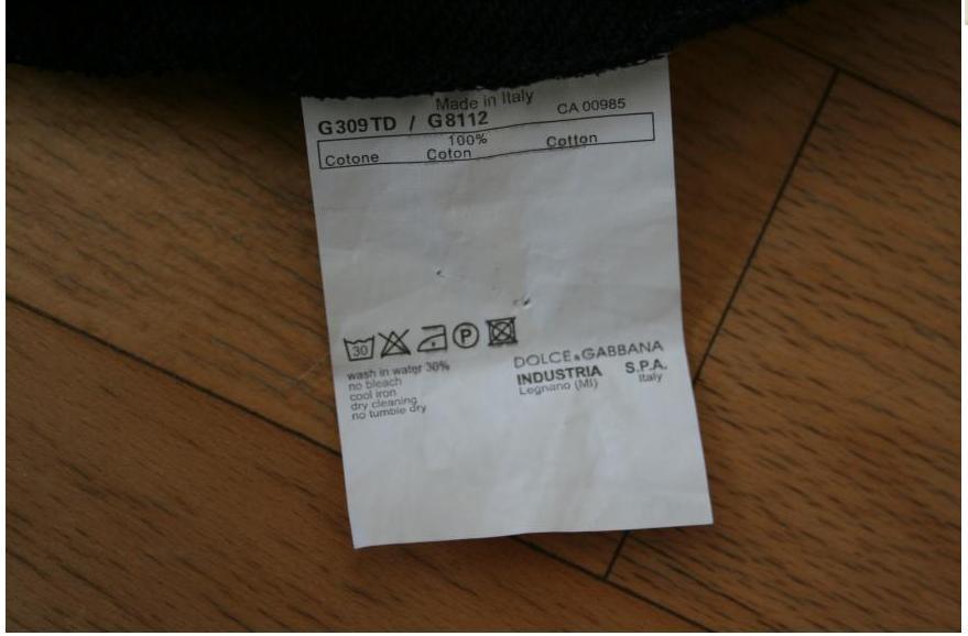 DOLCE&GABBANA ITALIA만을 사용했었고, 07FW 제품부터 DOLCE&GABBANA MENS COLLECTION ITALIA라고 표기하고 있습니다. (스몰플레이트 사용한 PK와 스몰플레이트 데님이 몇종류 나왔지만 예외로 하겠습니다) 그렇다면, 위 제품은 플레이트를 보자면 07FW이후의 제품이지만 세탁라벨의 표기방법은 05년식의 표기법을 사용하고 있으니 앞뒤가 맞지 않는 제품입니다.