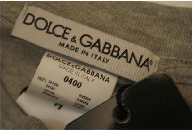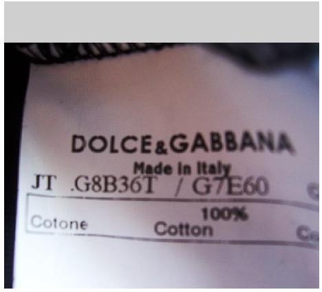 이 제품은 구형 돌체&가바나의 정품 티셔츠입니다. 구형의 경우에 목뒤 라벨이 화이트라벨이었고, 위의 모델처럼 세탁라벨이 목뒤탭에 바로 붙어있는 경우도 있었습니다. 요즘에는 이너웨어에 화이트라벨이 사용되고 있습니다.