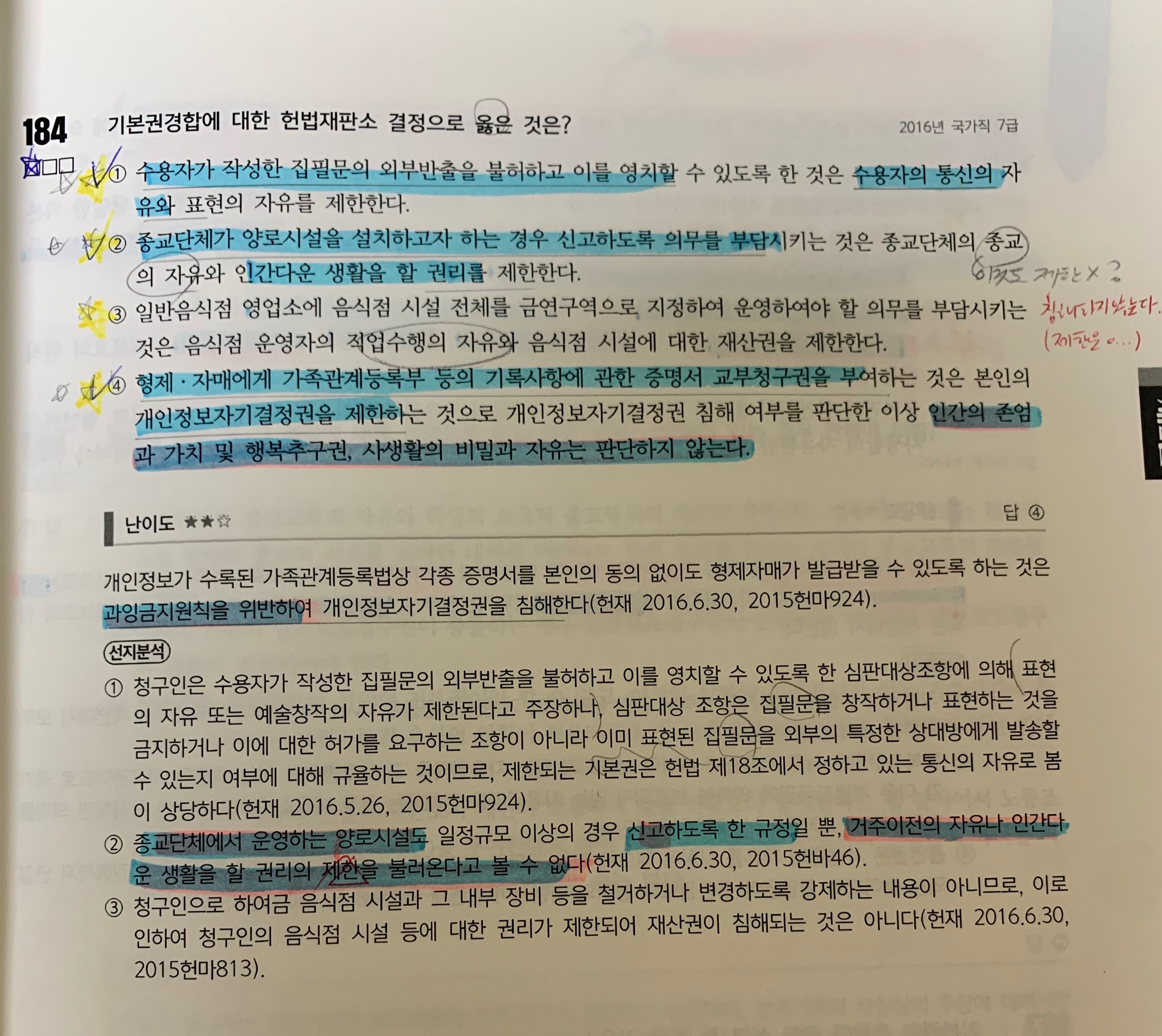 어떤 기본권을 제한하느냐 침해하느냐를 물어보는 문제를 출제하기도 하는 것 같은데, 이런 기본권들이 제한인지 침해인지까지 다 숙지하고 있어야 할까요?