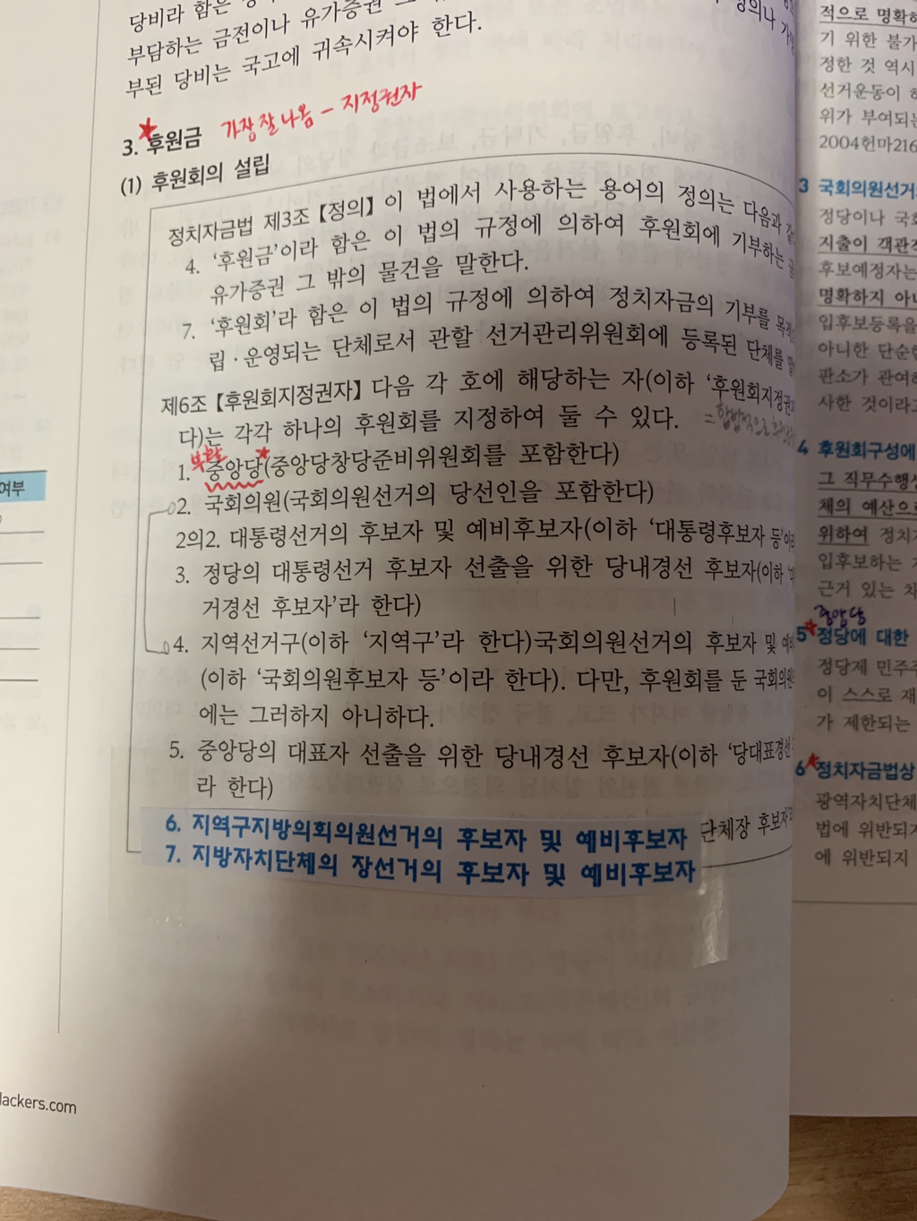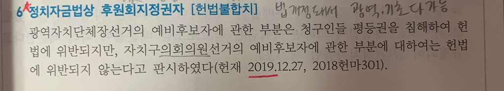 p. 129 후원회에 관한 판례에서 6번 판례 정치자금법상 후원회지정권자(헌법불합치) 헌재 2019.12.27, 2018.헌마301