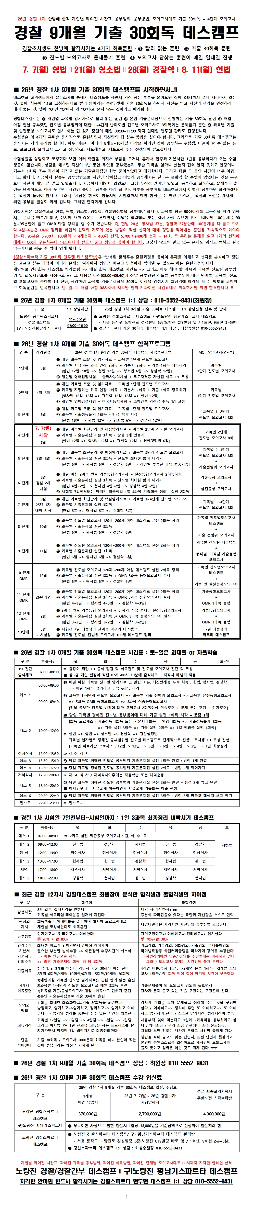 경찰초시생 26년 경찰 1차 한방에 합격시키는 9개월 데스캠프(7/7일) 작성자소리엘|작성시간25.06.08|조회수15 목록 댓글 0 글자크기 작게가 글자크기 크게가 다음검색 현재 게시글 추가 기능 열기 북마크 공유하기 신고 센터로 신고 댓글 댓글 0 댓글쓰기 답글쓰기 댓글 리스트
