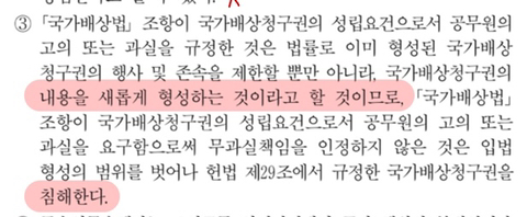 무과실 책임을 인정하지 않는 것이 국가배상청구권을 침해하지 않는다는 것은 알겠는데요, 중간에 내용을 새롭게 형성한다는 부분은 옳은 건가요?