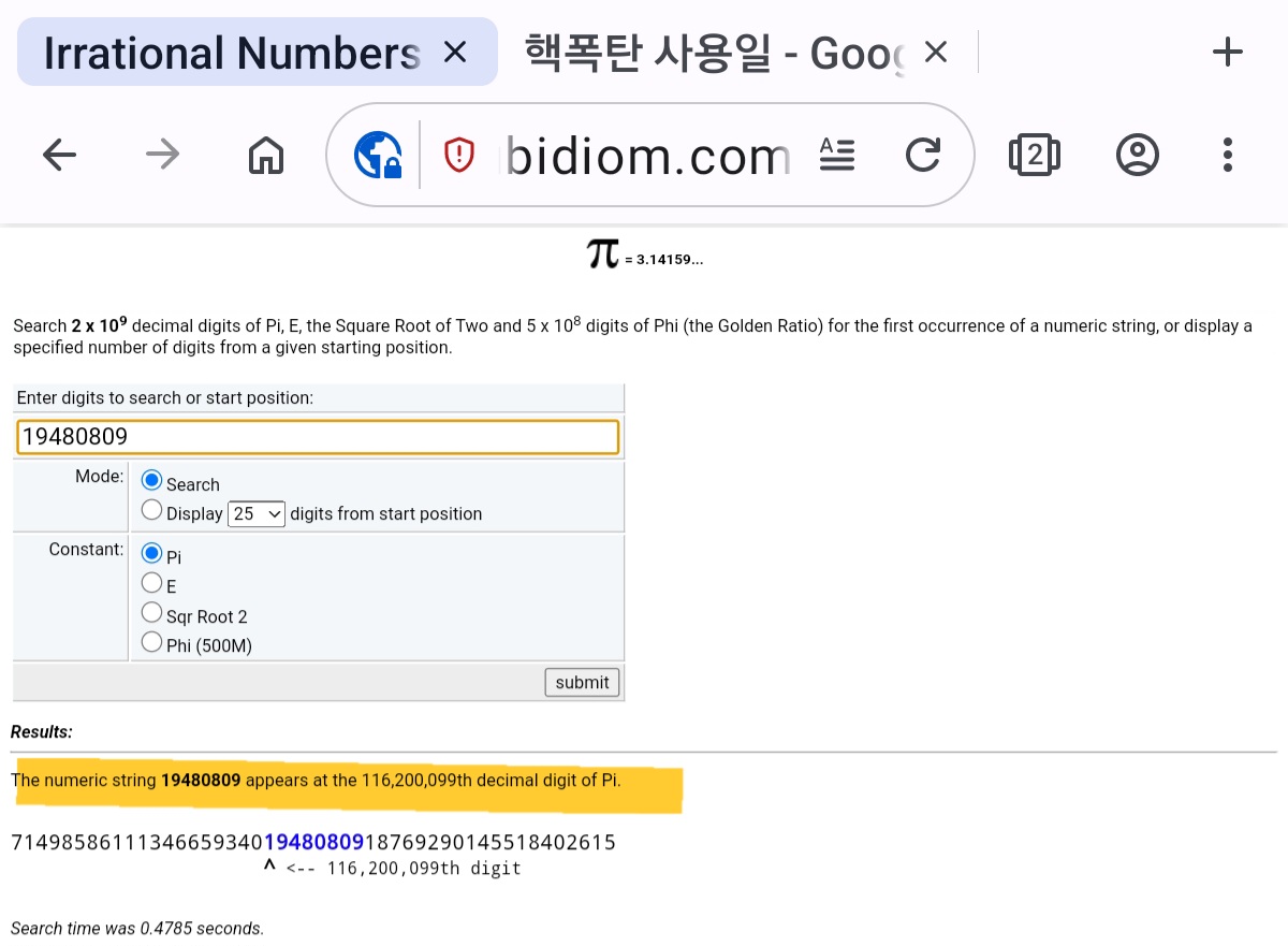 νμ¬ μ»΄ν¨ν°λ‘ κ³μ°λ μμ£Όμ¨ νμ΄μ μ«μμλ
