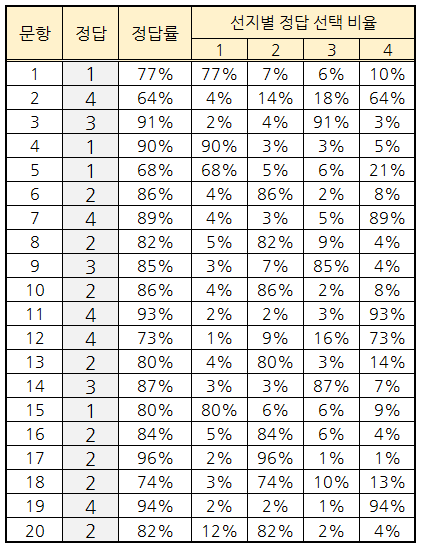 ※ 화요일 오후 6시 이후 다음 카페에 총평과 점수 분포가 공개됩니다. ※
