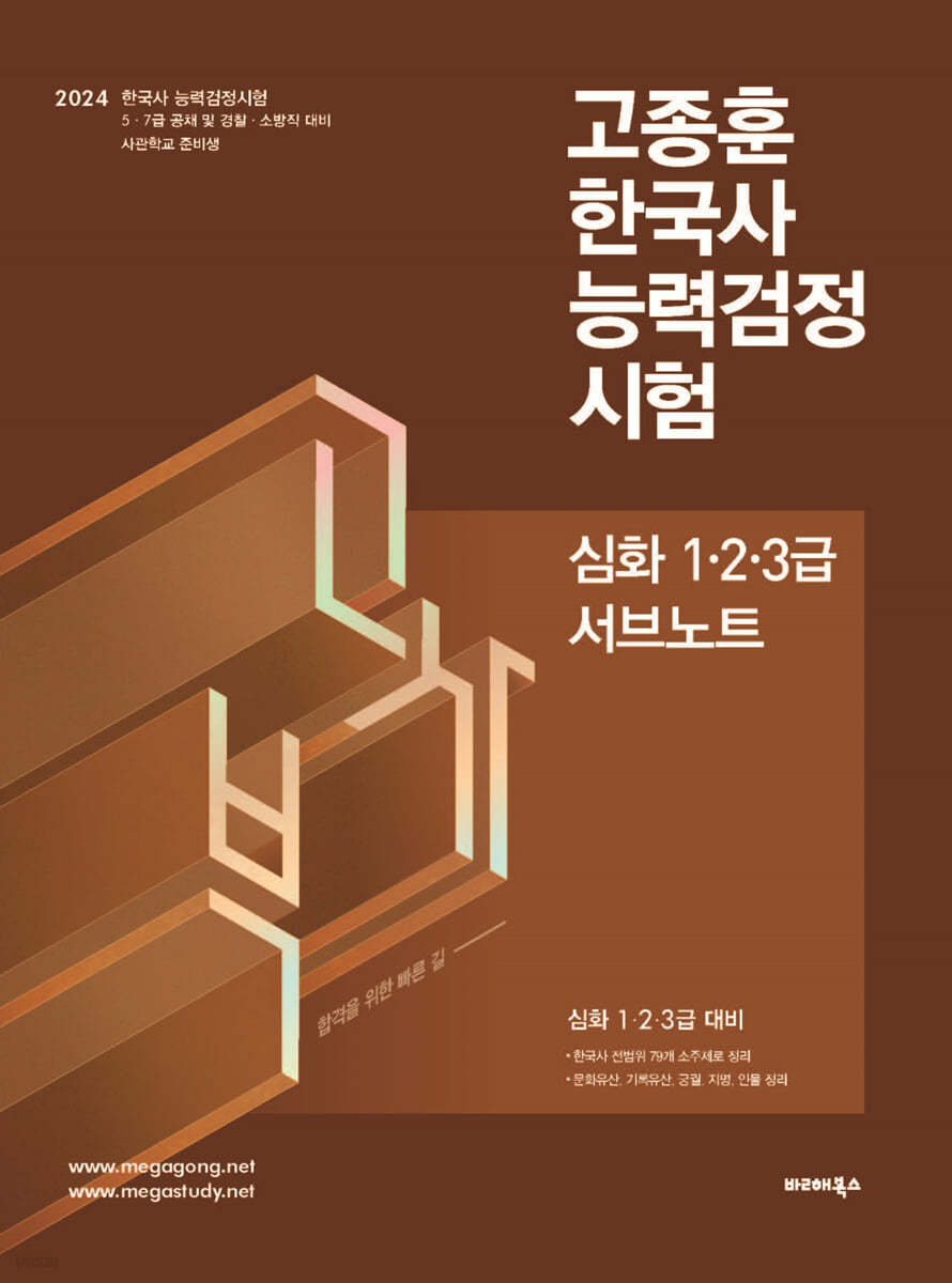 [한능검]2024 한국사능력검정시험 서브노트 작성자연구실|작성시간23.06.23|조회수1,087 목록 댓글 0 글자크기 작게가 글자크기 크게가 2024 고종훈 한국사능력검정시험 (심화1.2.3급) 서브노트120쪽 | 192*258*6mmISBN : 97911610120565월 20일 출간 | 정가 12,000원 책소개『2024 고종훈 한국사능력검정시험 서브노트』는 2024년 한국사능력검정시험 대비 교재입니다.요약 노트 형식으로 구성 ▼ 교재 미리보기 ▼2024 한국사능력검정시험 서브노트 미리보기.pdf3.31MB ▼ 온라인 서점 바로가기 ▼ yes24 용봉서적 알라딘 교보문고 메가공무원 메가공기업 메가스터디 첨부파일첨부된 파일이 2개 있습니다. jpg 파일 한능검.jpg 다운로드 pdf 파일 2024 한국사능력검정시험 서브노트 미리보기.pdf 다운로드 다음검색 현재 게시글 추가 기능 열기 북마크 공유하기 신고 센터로 신고 댓글 댓글 0 댓글쓰기 답글쓰기 댓글 리스트