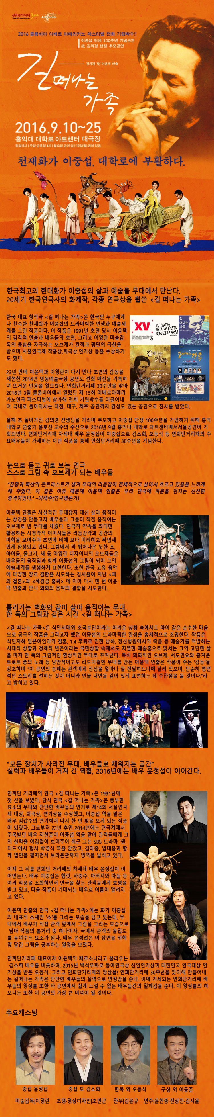 안녕하세요 연희단거리패입니다. <길 떠나는 가족> 많은 관심 부탁드립니다. 작성자연희단거리패|작성시간16.08.16|조회수22 목록 댓글 0 글자크기 작게가 글자크기 크게가 다음검색 현재 게시글 추가 기능 열기 북마크 공유하기 신고 센터로 신고 댓글 댓글 0 댓글쓰기 답글쓰기 댓글 리스트