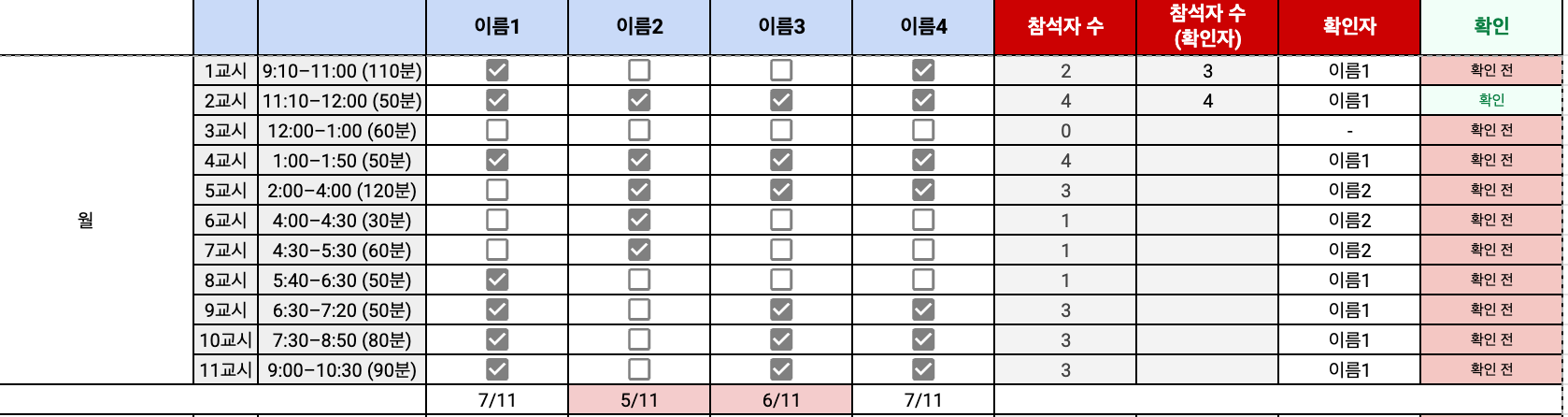 | 4κ΅μ | 12:00β1:00 (60λΆ) |