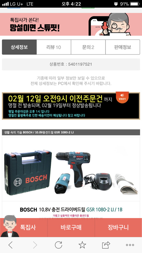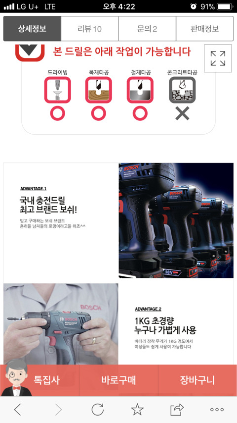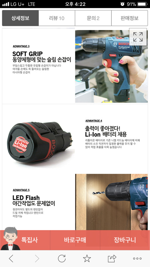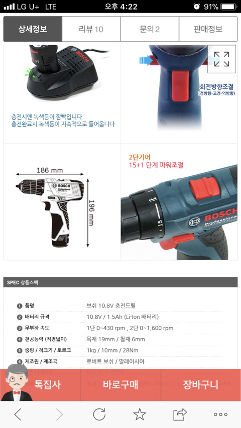 1.BOSCH 10.8v gsr 10,8.0-2-li 전동드릴1개