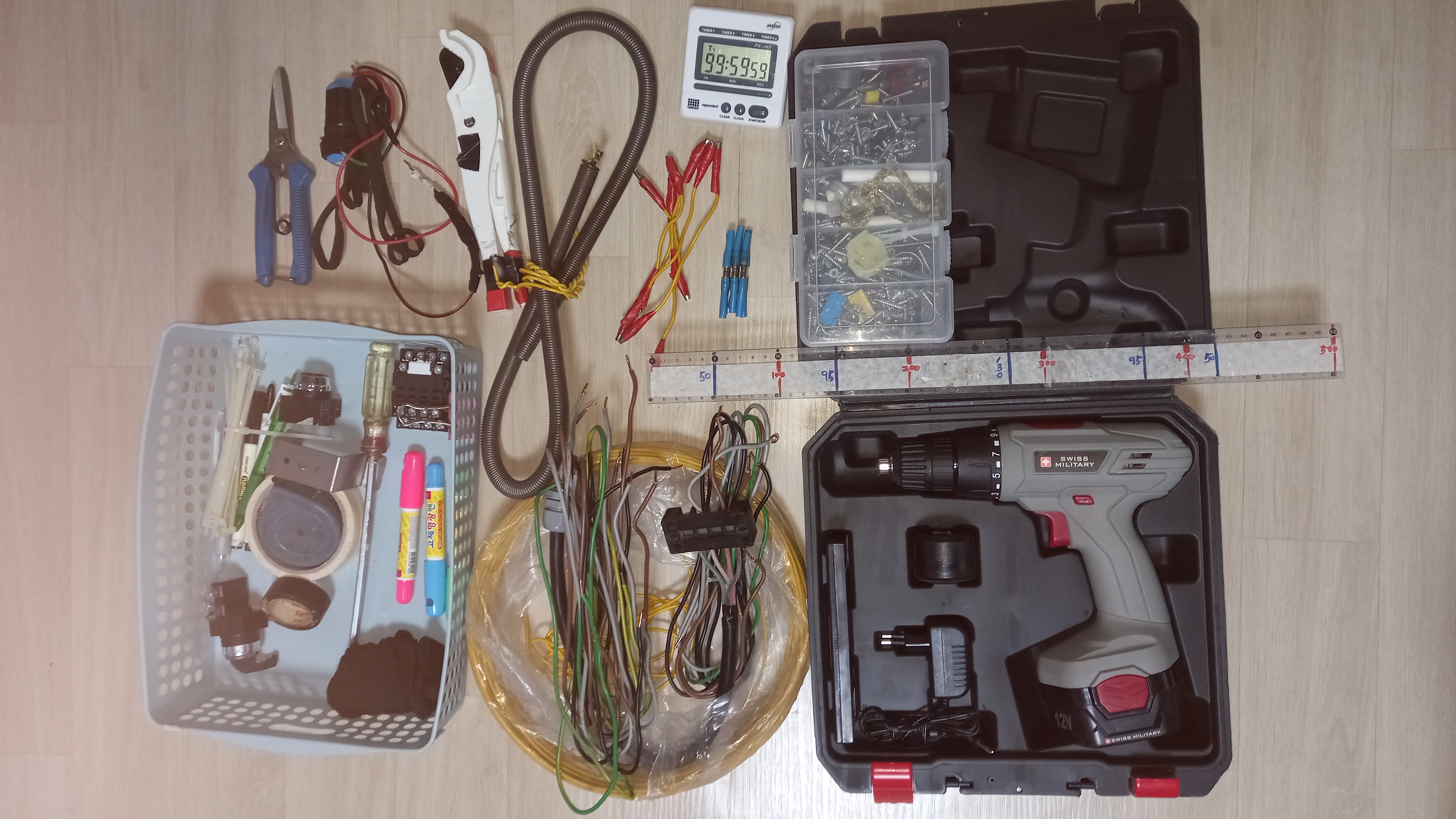 - 전동드릴, 드라이버, 스프링밴더, 가위, 파이프커터, 벨테스터기, 스트리퍼,자석, 자, 피스함, 전선 등