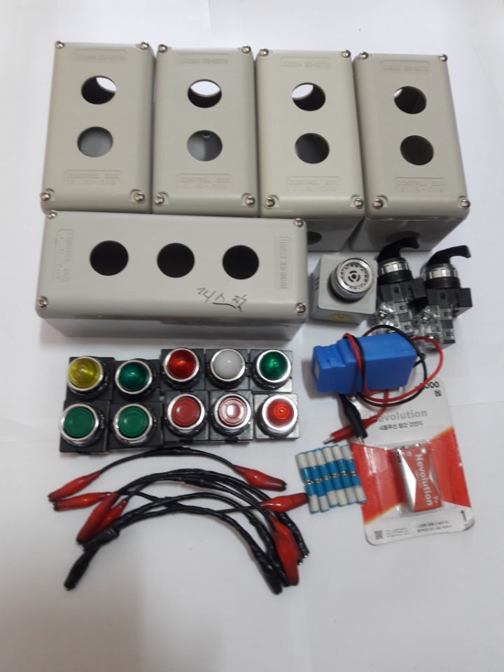 MCCB새거 1개. 콘트롤박스 2구짜리 4개. 3구짜리1개(승강기) 퓨즈홀더2개. 램프 GL2개 RL2개 YL1개 WL1개