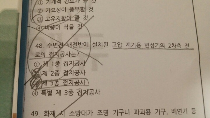 문제는 고압계기용 변성기의 2차측 전로의 접지공사문제인데
