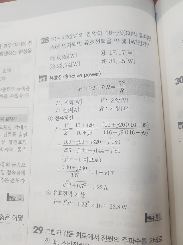 28 번 문제는 V자승/R 로 풀면 답 라 와같이나옵니다.ㅠㅠ