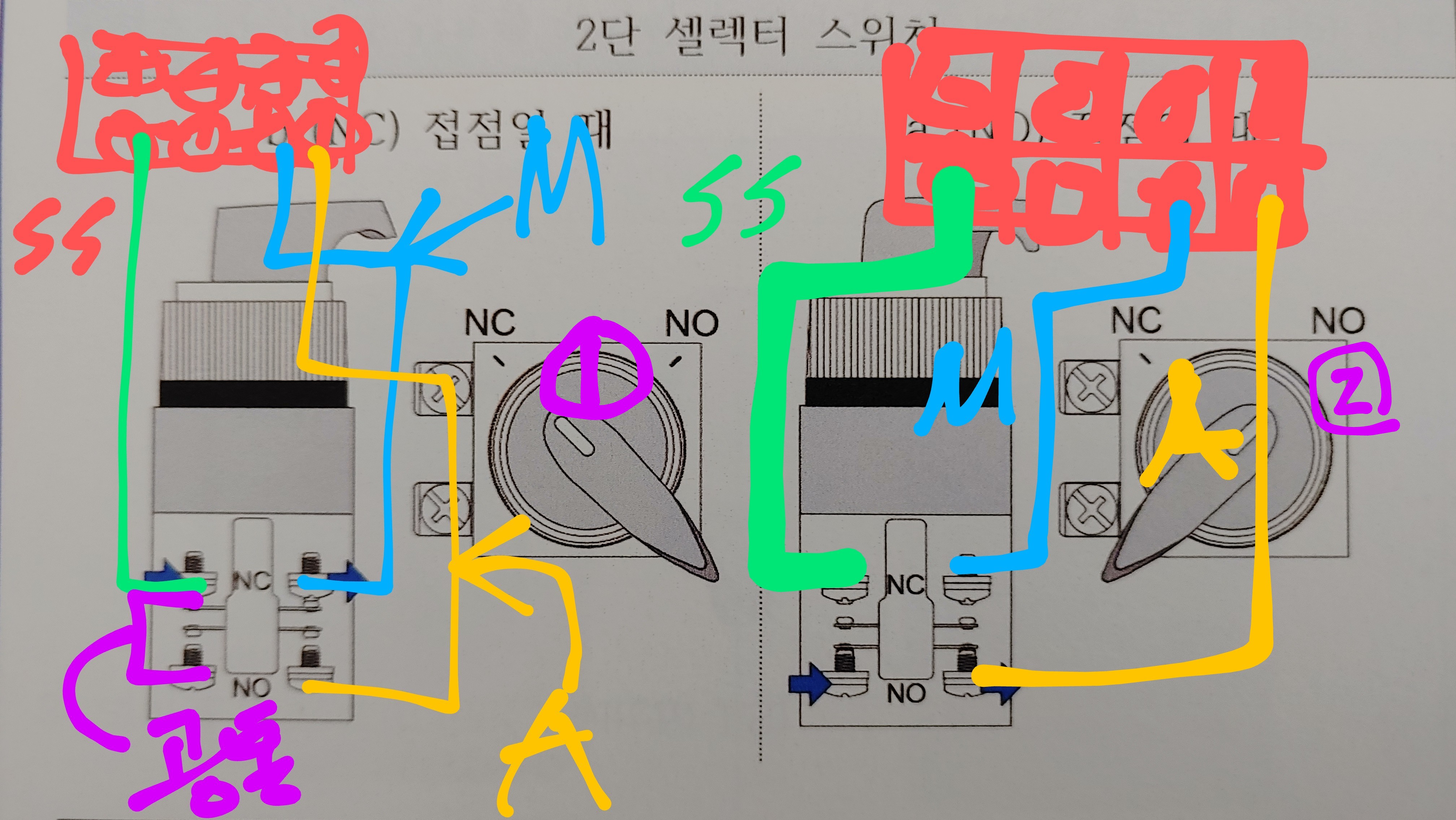 어제 FLS 문제 제어판 및 배관 연습하면서 다른건 어렵지 않았는데 셀렉터 스위치 결선이 헷갈렸던터라 질문 드립니다.