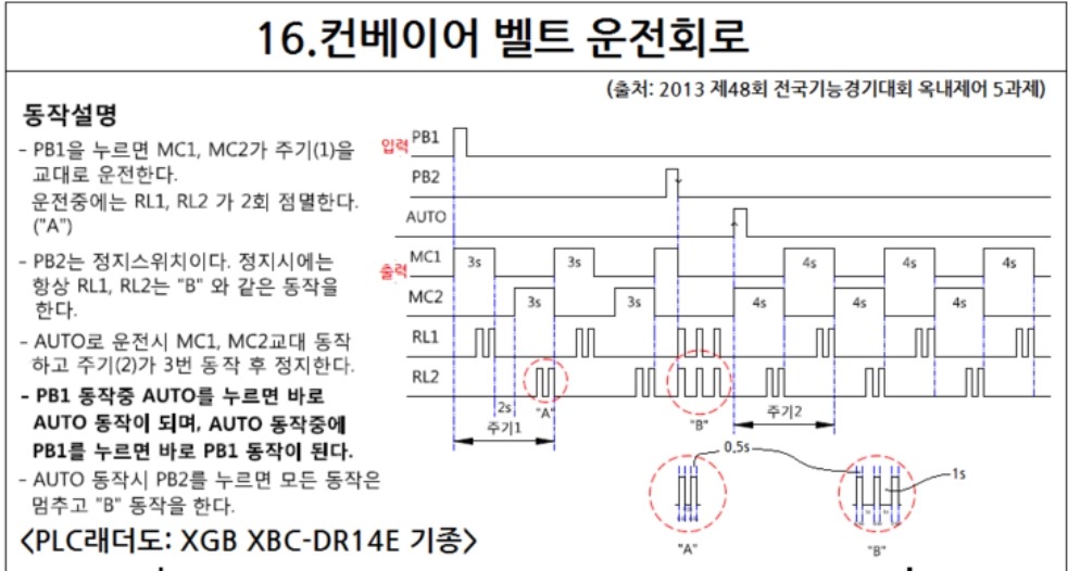 회로에서 pb1 동작중 auto를 누르면 바로 auto 동작이 되며,auto 동작중에 pb1를 누르면 바로 pb1동작이 된다.