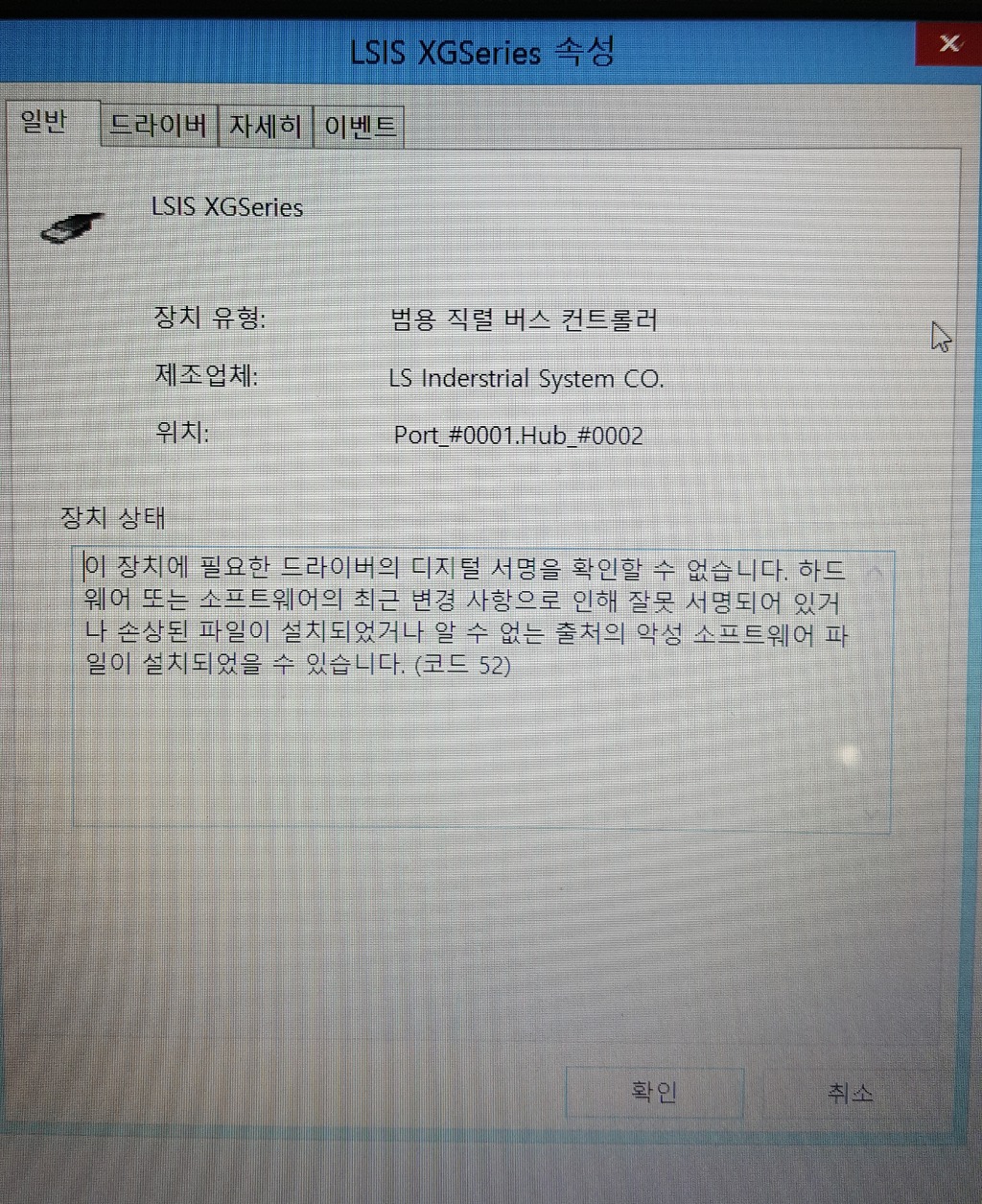 USB를 이용해 PC와 연결하는중 첨부와 같은 오류가 발생합니다.