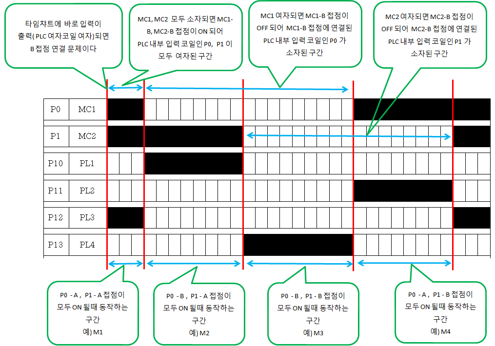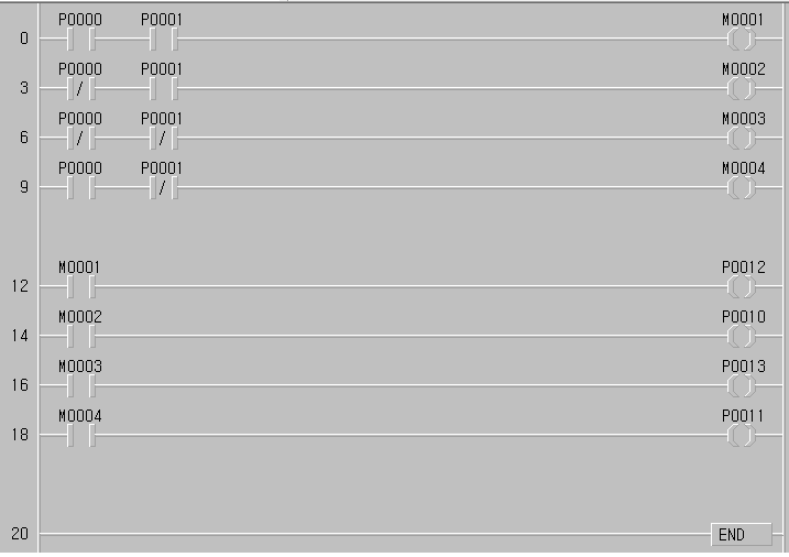 작성자온암 작성시간 14.05.21 위의 P0, P1, P10을 보았을때에,...입력접접이 b접점으로 입력이 들어오더라도, 래더상에는 a접점으로 작성하는 게 핵심이군요.