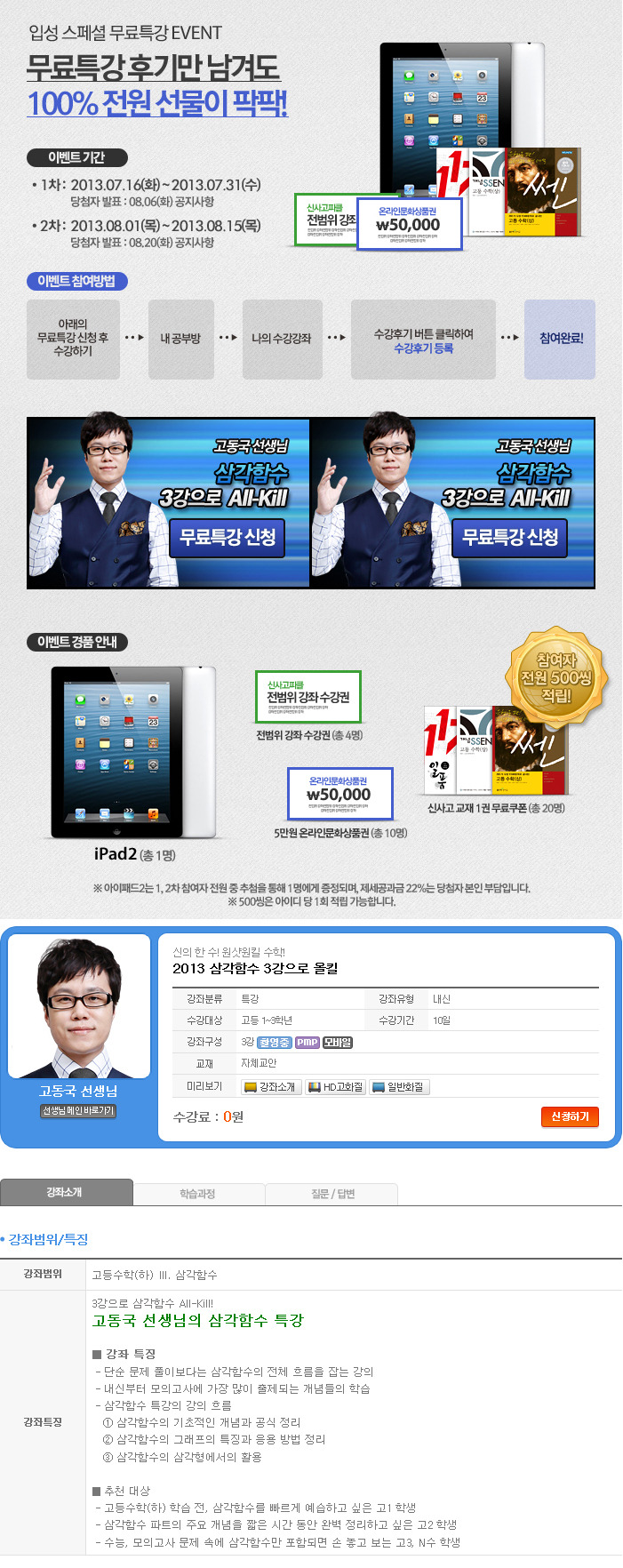 [무료특강 이벤트] 3강으로 끝내는 올킬 삼각함수 수강후기 이벤트!! 아이패드, 강좌수강권, 문화상품권, 신사고 교재 증정