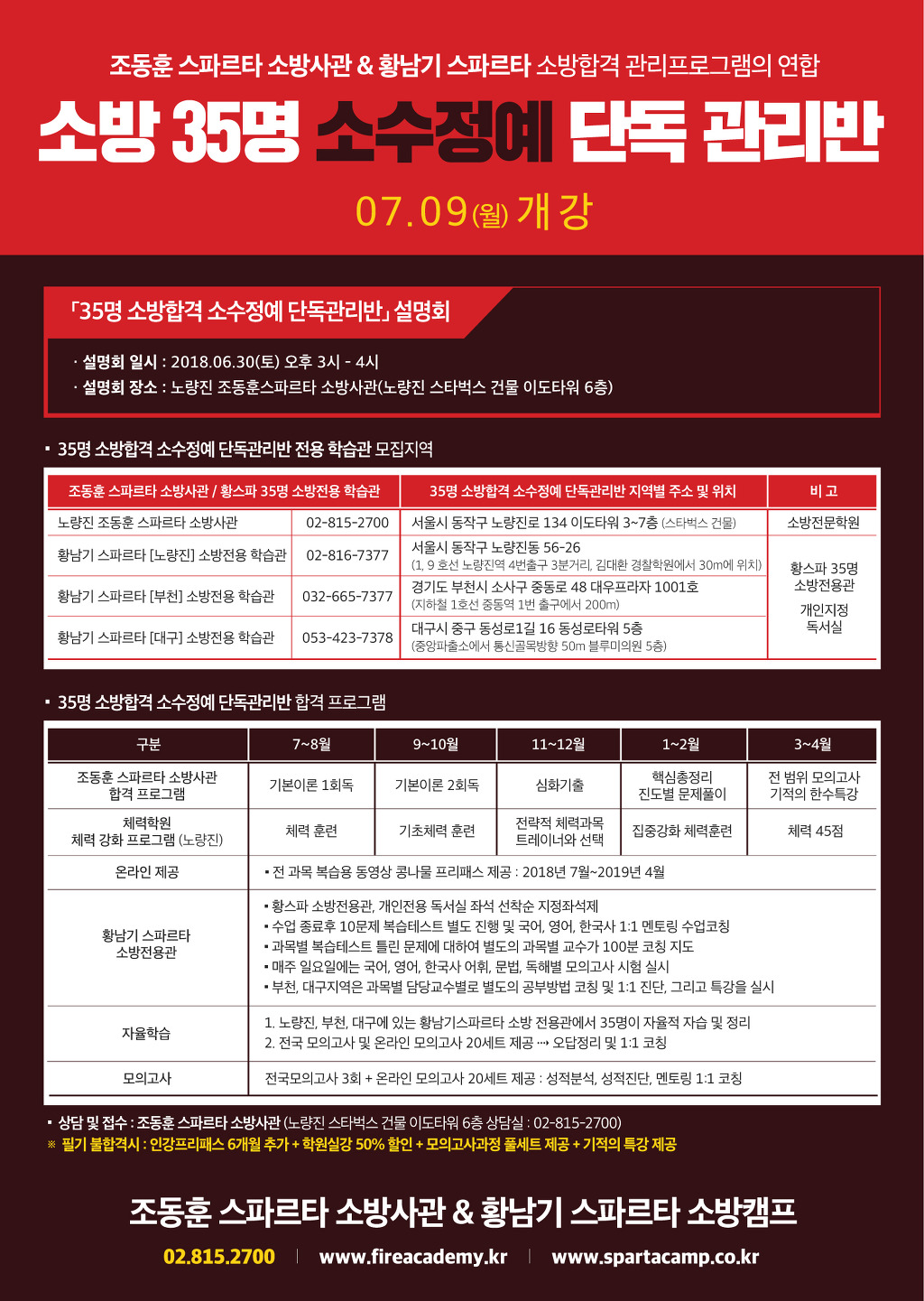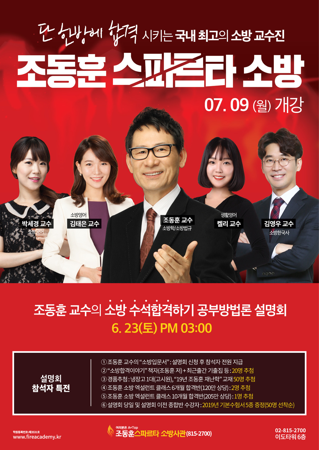 [조동훈소방&황남기스파르타 소방캠프] "꼭" 합격시키는 35명 소수정예 단독관리반(노량진, 부천, 대구) 교수진 및 프로그램 - 6. 23일 설명회