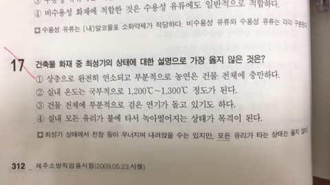 13년기출(학개론2)2쇄 312p 17번 작성자우요한|작성시간17.10.26|조회수81 목록 댓글 2 글자크기 작게가 글자크기 크게가 부분적으로 농연은 건물 전체에 충만하다.모든 유리가 불에 타서 녹아 떨어지는 상태이 두가지 중 어떤게 더욱 더 오답인지 모르겠습니다.모든이란 단어에 더 초점을 맞춰야 하나요? 다음검색 현재 게시글 추가 기능 열기 북마크 공유하기 신고 센터로 신고 댓글 댓글 2 댓글쓰기 답글쓰기 댓글 리스트 작성자조동훈T | 작성시간 17.10.26 네 해설에 모든에 밑줄이 있네요 답댓글 작성자우요한 작성자 본인 여부 작성자 | 작성시간 17.10.27 감사합니다! 댓글 전체보기