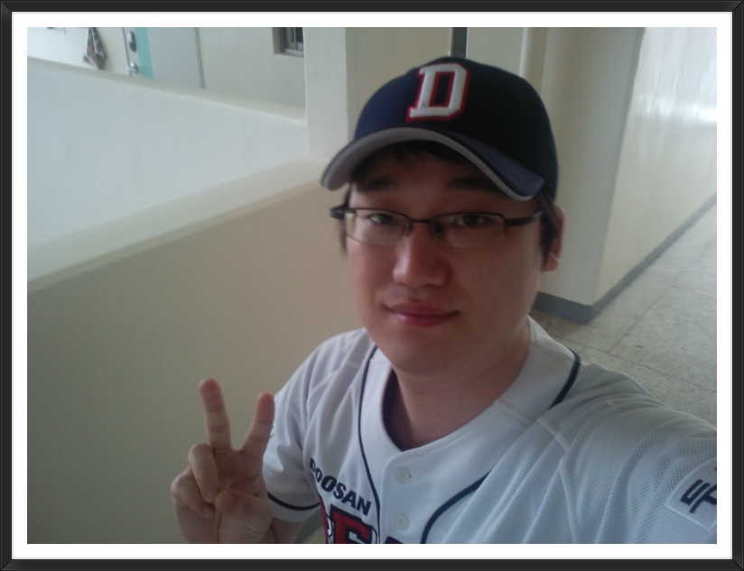 두산베어스 정재훈 선수 져지 입고 브이~ ㅡㅡ)v