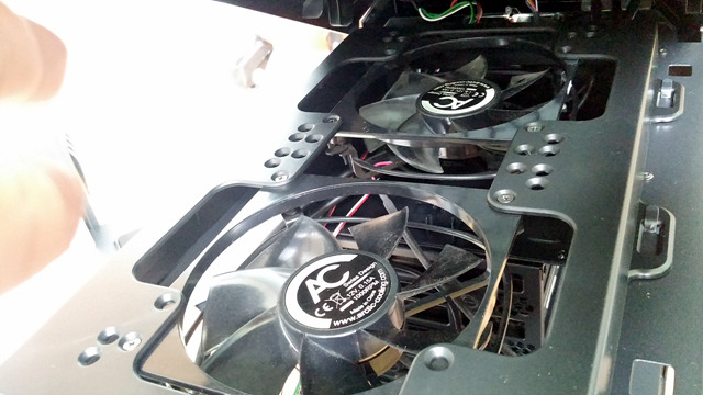 다른 PC에 잠깐 장착했다가 떼어놓았던 ARTIC 120mm 팬을 꺼내어 케이스의 상단 배기로 장착할 겁니다.