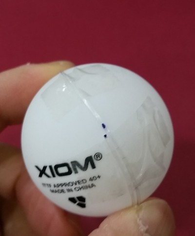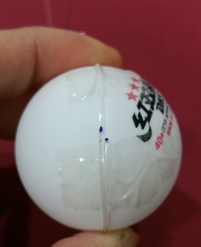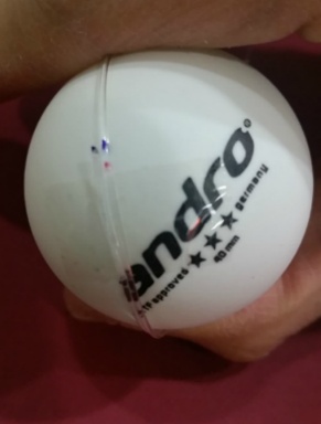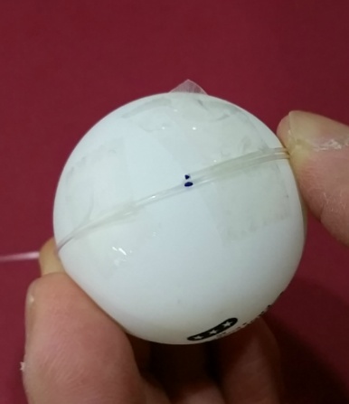 사진에서 보시는 바와 같이 셀를로이드볼 둘레길이에 칠해놓은 파란색 표시보다