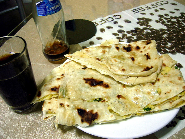 우리나라 부침개랑 비슷해요. 얇게 편 밀가루 반죽에 치즈랑 짜잘한 풀들 넣고..(가끔고기도..) 구워서 나오는거에요^^