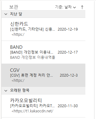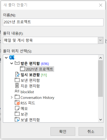 파일을 폴더로 만들어서 정리하듯이 이메일도 폴더로 만들어 정리할 수 있다. 메일 폴더 먼들기는 마우스 우클릭으로 새 폴더를 만들면 된다. 폴더 이름을 적당히 정하고 폴더 속으로 메일을 이동시켜야 한다. 메일을 넣는 방법은 메일을 선택해서 드래그앤드롭으로 가져다 놓으면 된다. 쉬프트 키를 이용해 여러 메일을 한꺼번에 선택해서 끌어놓을 수도 있다. 또한 폴더 아래 하위 폴더를 만들어서 관리할 수도 있다. 폴더에 일일이 이메일을 넣어주는 게 귀찮다면 자동설정을 하면 된다. 특정인과의 이메일을 항상 해당 폴더로 이동하고 싶을 때는 메일 우클릭 후 이동 -> ‘이 대화의 메시지는 항상 이동’을 선택해서 폴더를 선택하면 된다.