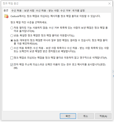 팁 #7: 아웃룩 스팸 메일 설정 및 관리하기