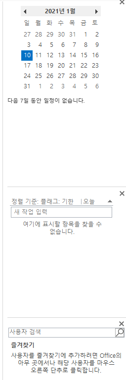 할 일 모음 창은 아웃룩에 기록되어 있는 일정, 작업, 연락처 정보 등을 한눈에 파악할 수 있는 기능이다. 자신의 스케줄을 효과적으로 관리하길 원하는 직장인들에게 유용하다. 할 일 모음 창은 아웃룩 상단의 보기 탭 -> 레이아웃 그룹 -> 할 일 모음을 선택하면 활성화된다. 단축키로는 Alt+V+B를 동시에 누르면 된다. 할 일 모음 창에서는 플래그(깃발) 기능을 이용하면 편하다. 특정 시기까지 처리해야 할 이메일에 플래그를 꽂으면 할 일 모음 창 작업 목록에 나타나게 된다. 해당 업무를 마치고 나면 플래그를 제거하면 된다.