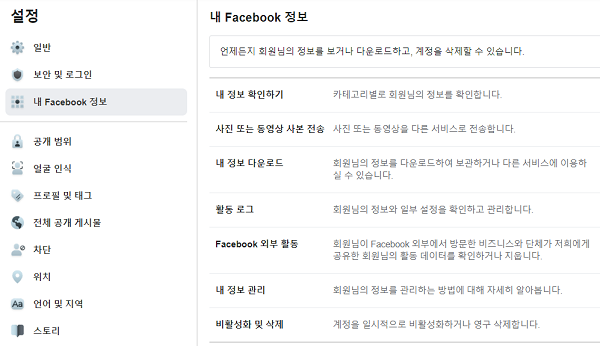 페이스북 데이터 다운로드하기