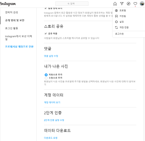 인스타그램 데이터 다운로드하기