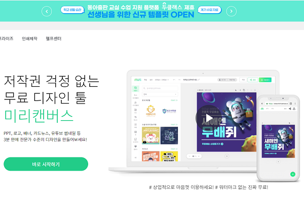 미리캔버스는 완전 무료에 가까운 카드뉴스 제작툴이다. 미리캔버스는 지난해 11월 정식 서비스를 시작한 디자인 플랫폼으로 가입자 수 150만명을 넘어섰다. 웹 기반 디자인 편집 툴과 템플릿 및 디자인 소스를 함께 제공하는 플랫폼으로 크롬 브라우저에 최적화되어 있어 크롬으로 접속하는 걸 추천한다. 미리캔버스의 가장 큰 장점은 무료로 이용 가능하며 워터마크가 없다는 것이다. 사용법도 간단해 몇 번의 클릭만으로 퀄리티 있는 카드뉴스를 만들 수 있다.