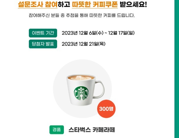 | 경품 | 스타벅스 카페라떼 Tall 300명 |