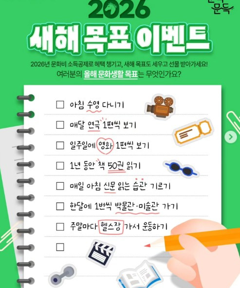 [문화비소득공제] 2026 새해 목표 이벤트 ~ 1월 22일 작성자이벤트|작성시간26.01.09|조회수23 목록 댓글 0 글자크기 작게가 글자크기 크게가 응모기간2026년 1월 22일 까지경품네이버페이 포인트 1만 원 모바일쿠폰 (30명)바로가기https://www.instagram.com/p/DTPPSbzkgWz/?img_index=1스크린샷 다음검색 현재 게시글 추가 기능 열기 북마크 공유하기 신고 센터로 신고 댓글 댓글 0 댓글쓰기 답글쓰기 댓글 리스트