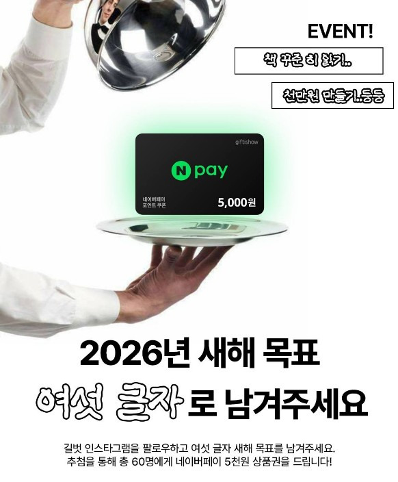 [길벗] 길벗 2026 새해 목표 댓글 이벤트 ~ 1월 18일 작성자이벤트|작성시간26.01.14|조회수15 목록 댓글 0 글자크기 작게가 글자크기 크게가 응모기간2026년 1월 18일 까지경품60명에게 네이버페이 포인트 5천원바로가기https://www.instagram.com/p/DTH0ONWDTQA스크린샷 다음검색 현재 게시글 추가 기능 열기 북마크 공유하기 신고 센터로 신고 댓글 댓글 0 댓글쓰기 답글쓰기 댓글 리스트
